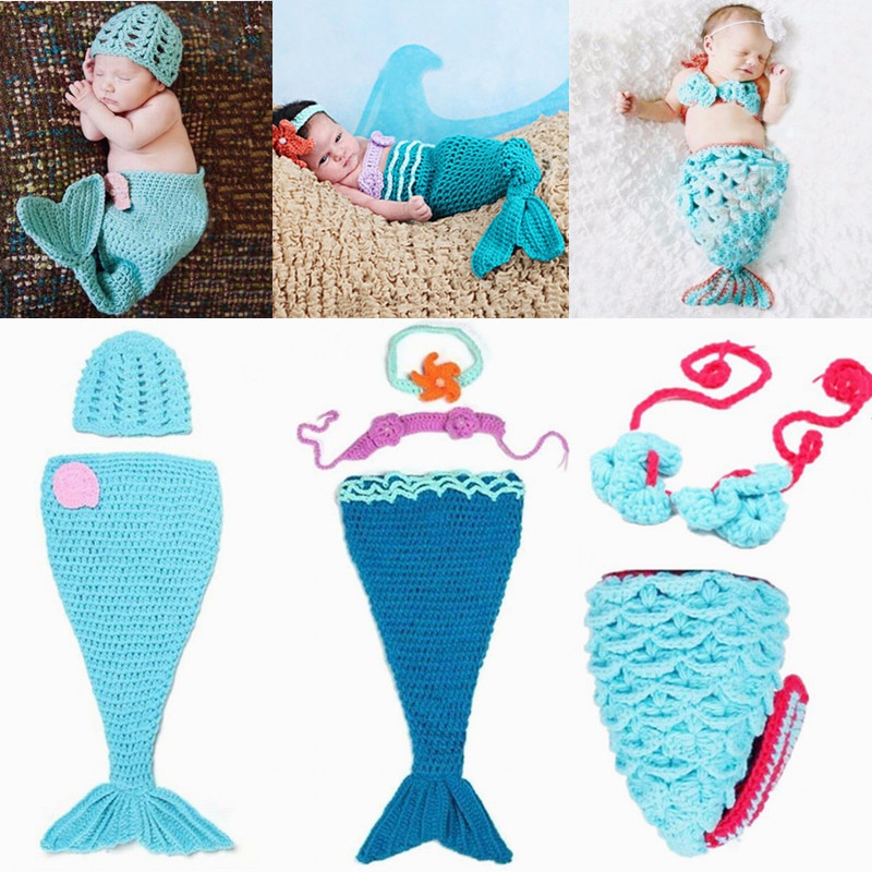 3 Estilos Adereços Fotográficos Recém-Nascidos Conjunto De Crochê Bebê Boné Tricotado Peixe Azul Saia Foto Fantasia Infantil Menino Menina Roupas