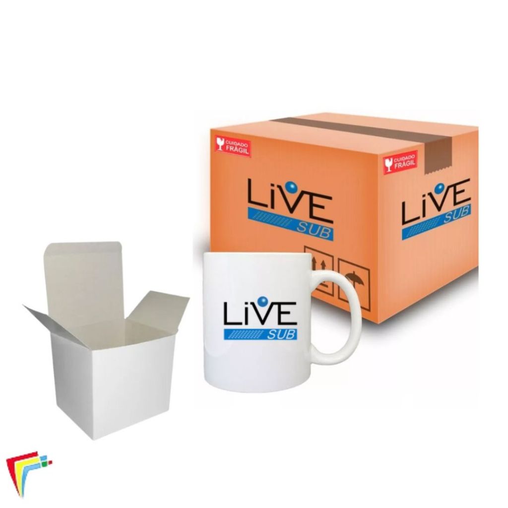 12 Unid. Caneca Branca Para Sublimação Live Porcelana + Caixinha Branca