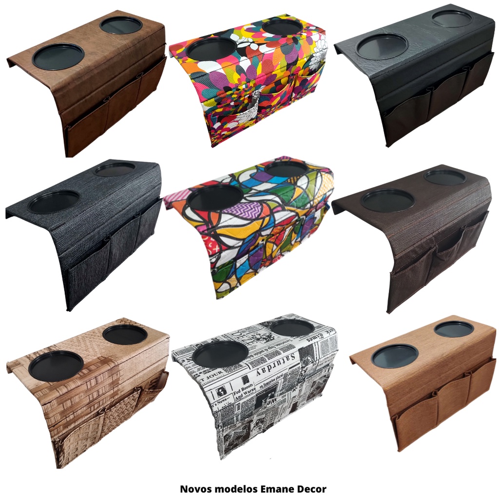 Kit 2 Bandeja Esteira Porta Copo Braço de Sofá Apoio de Copos Esteiras Porta Controles Modelo Costurado Varias Cores