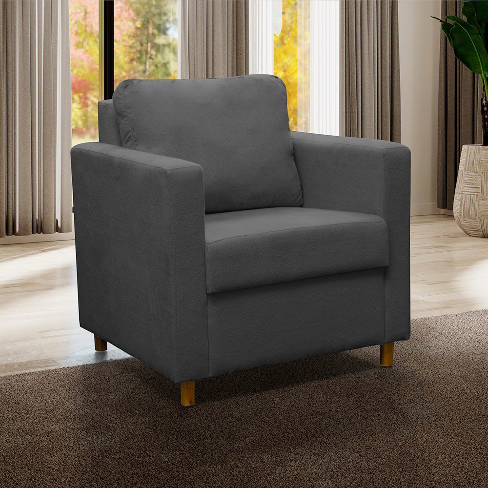 Poltrona Decorativa Para Sala Divine Base Reforçada De Madeira Suede Cinza - Clique E Decore