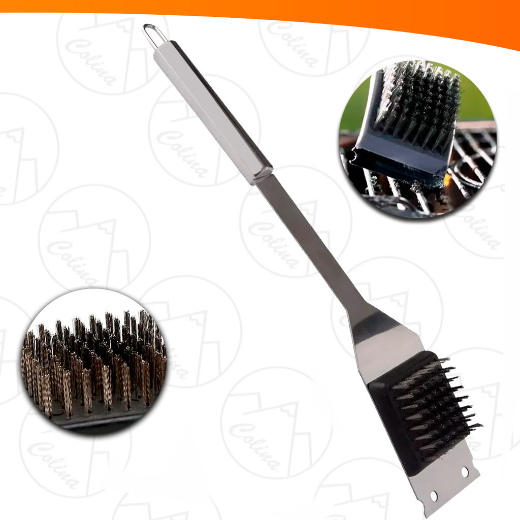 Escova De Aço Inox Churrasqueira Limpa Grelha Com Lâmina Raspadora