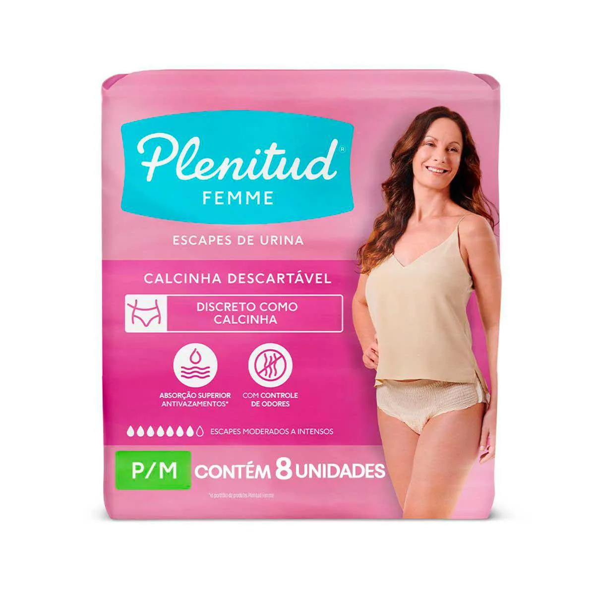 Roupa Íntima Descartável Feminina Plenitud Femme P/M Absorção Moderada a Intensa 8 unidades