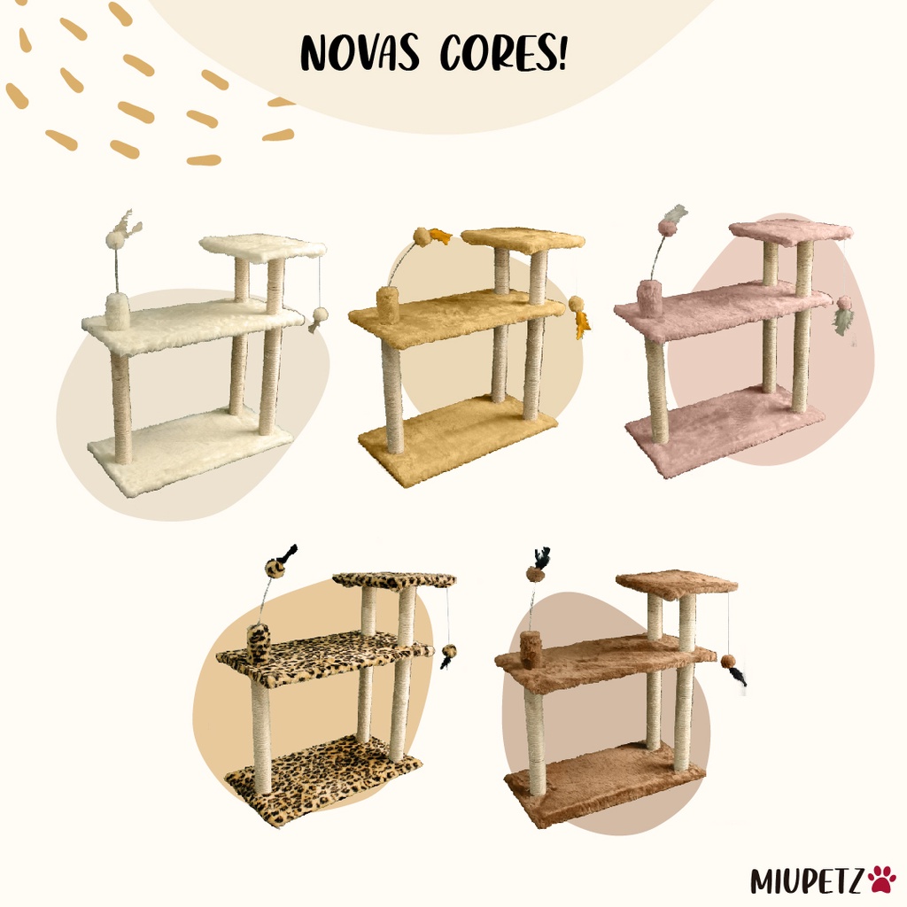 NOVAS CORES! Arranhador Gatos 3 Camas Grande com 2 Bolinhas e Penas 14 CORES - Miupetz Store