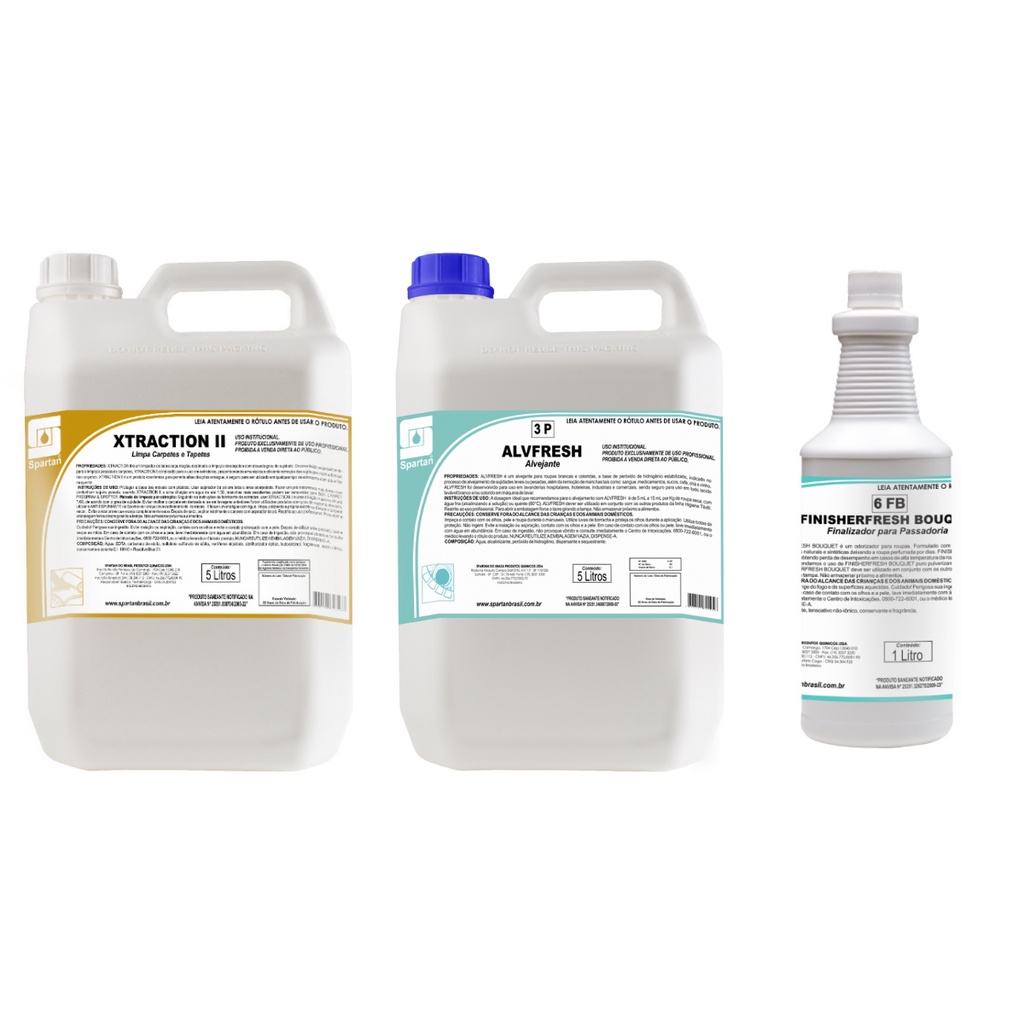 Kit Basico Para Limpeza De Estofado Spartan 01 Alvfresh 5L 01 Xtraction 5L 01 Bouquet 1L