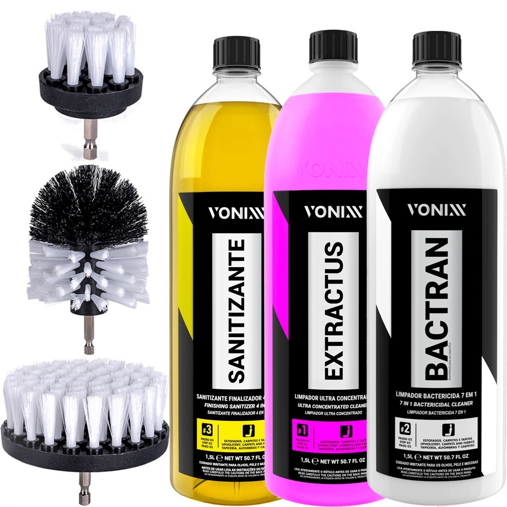 Kit Sistema VSC Vonixx Limpeza Veicular Automotivo de Estofados e Carpets 1,5L Extractus Bactran Sanitizante