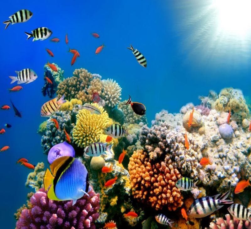 Papel De Parede Paisagem Fundo do Mar Peixes Coral GG514