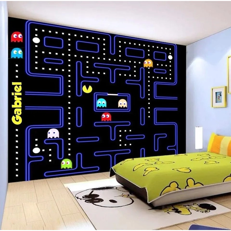 Papel de Parede Infantil Pac Man Quarto de Menino Gamer Game Lançamento m²