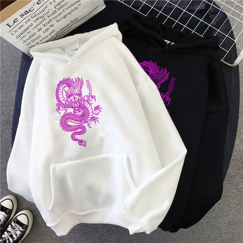 Moletom Feminino Com Capuz Estampa De Dragão Moda Streetwear Casual