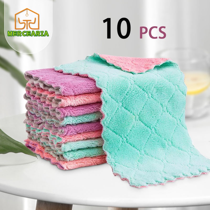 10 pcs Pano Absorvente Anti Óleo Para Cozinha / Toalha De Limpeza De Veludo Cozinha / Toalha De Mesa / Pano De Microfibra