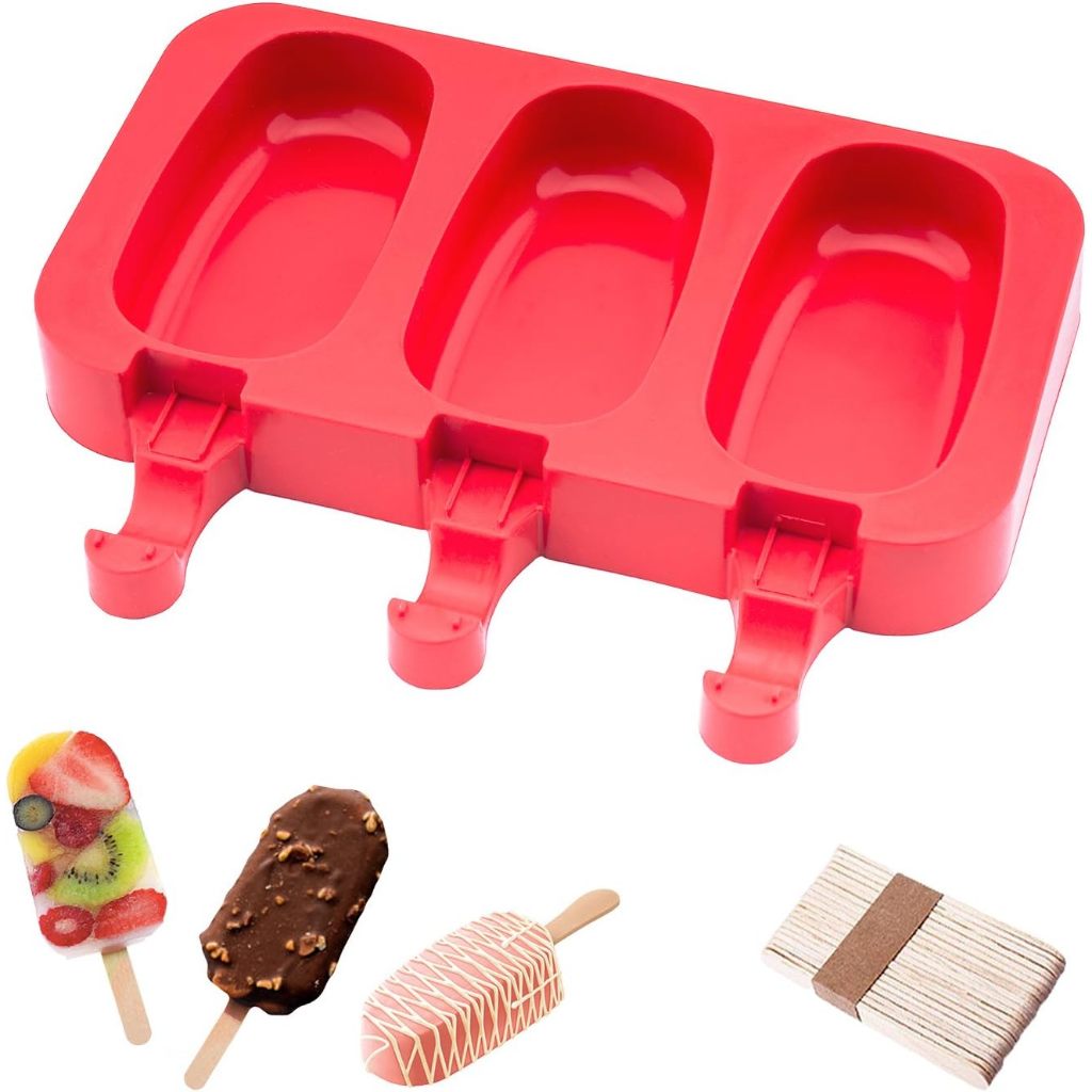 Forma Molde Para Sorvete Picolé Silicone C/ Tampas E 50 Palito Empilhavel
