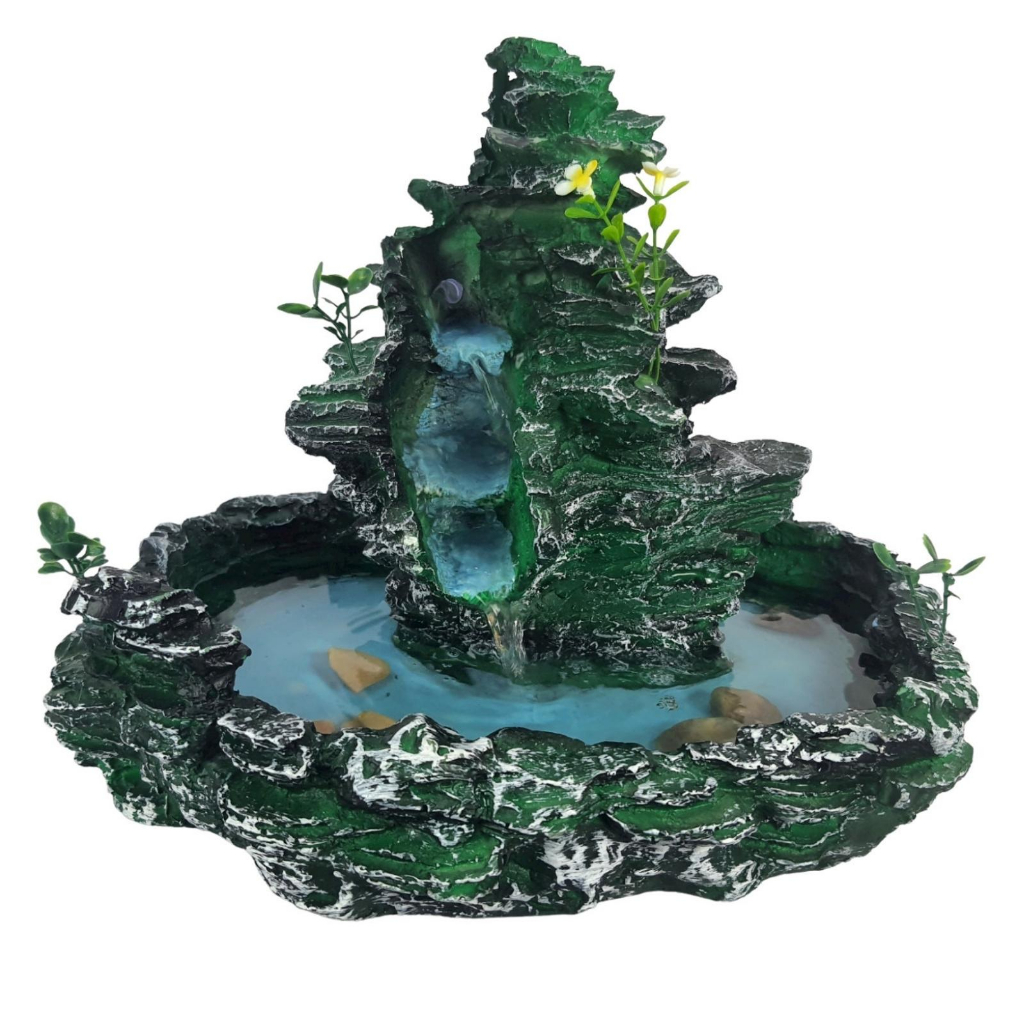 Fonte Cascata 3 Quedas Água Pedra Verde Em Resina
