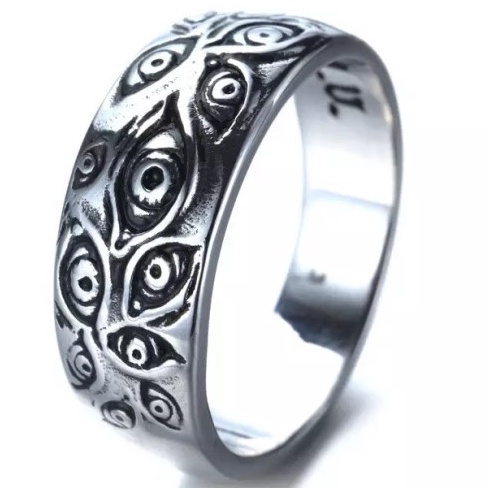 Anel Gótico Olhos Prateado Punk Retro Masculino