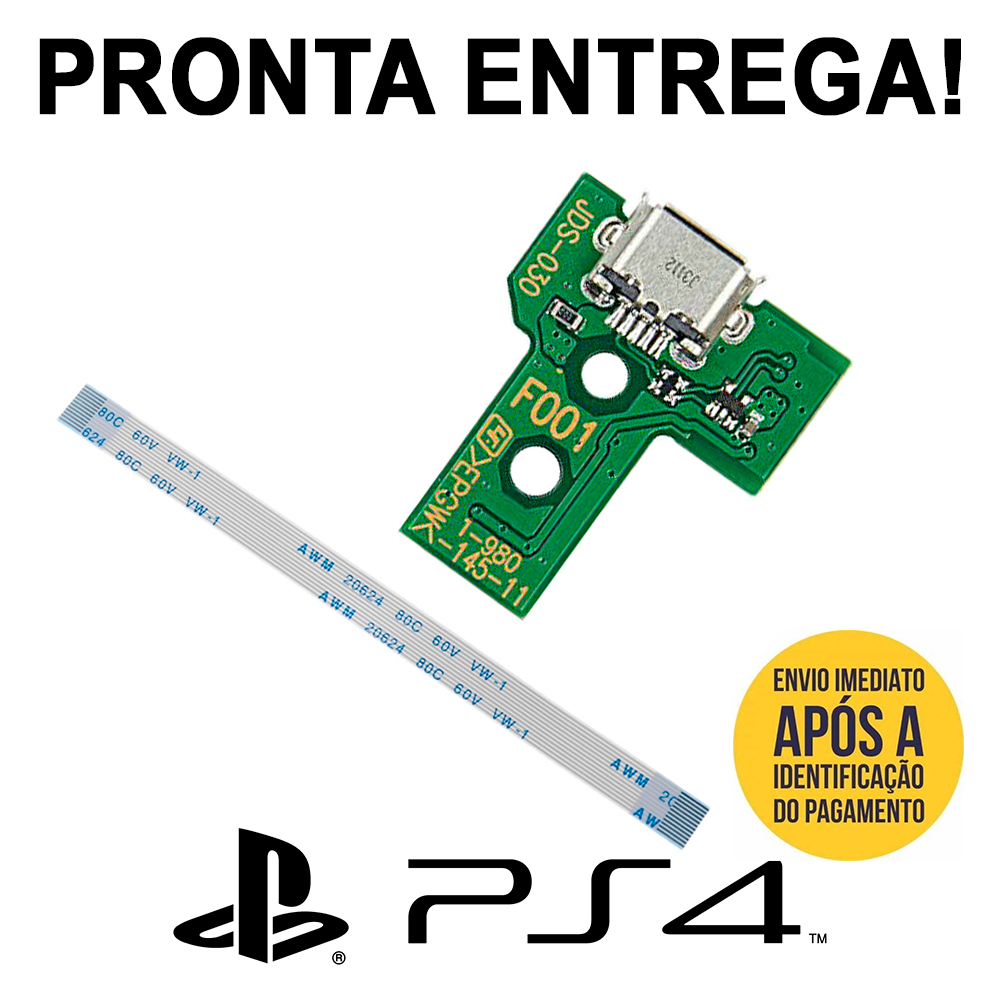 Placa Carregamento controle Ps4 mais cabo flat 12 ou 14 vias Jds/Jdm 001 011 030 040 055