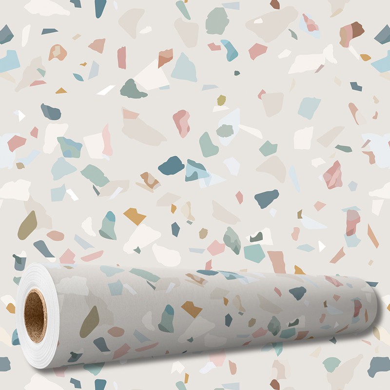 Papel de Parede Adesivo Terrazzo Granilite Geométrico Lavável BrancoTiffany Sala Quarto 1m x 50cm