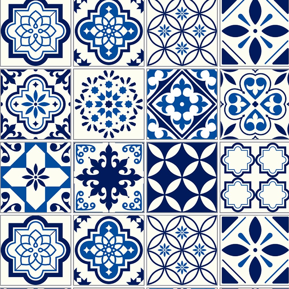 Papel Adesivo De Parede Azulejo Azul 2 Metros Cozinha Lavável