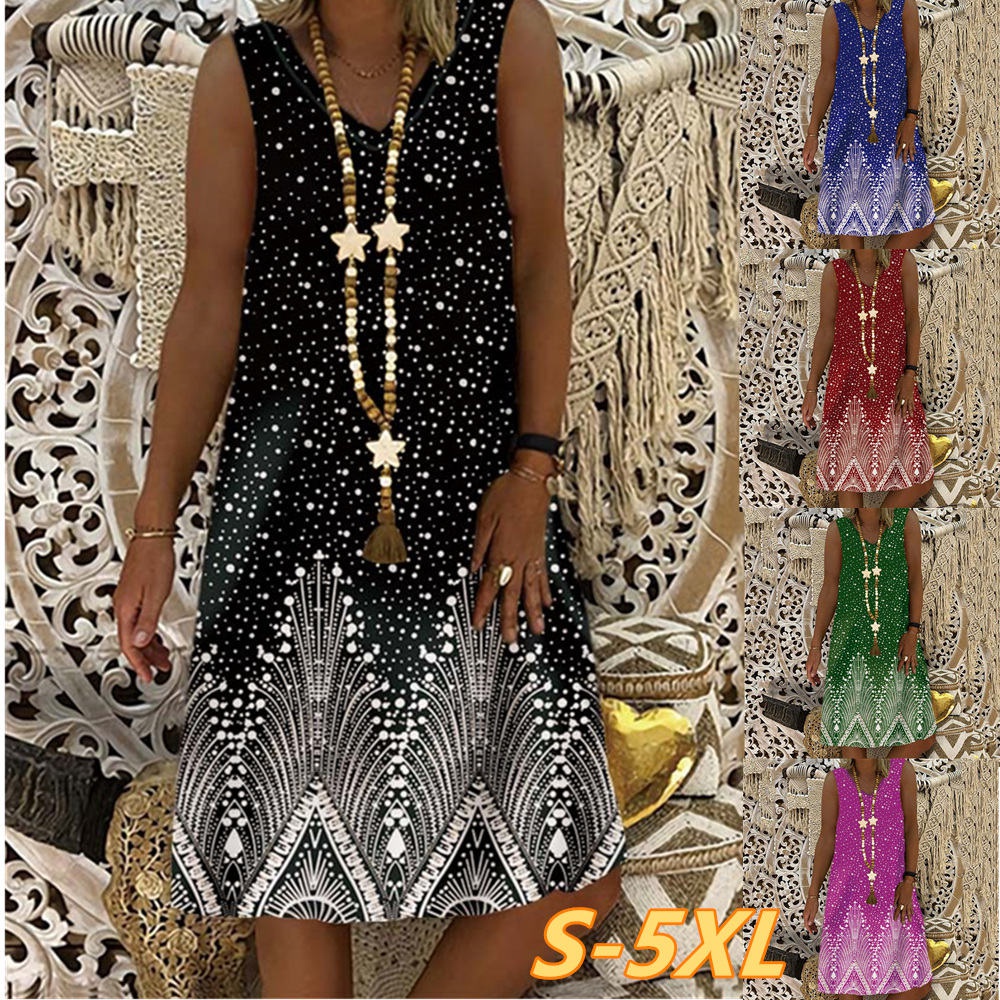 2022 Vestido de Verão feminino sem mangas mais Vestido de tamanho V-Neck Loose S-XXXXXL