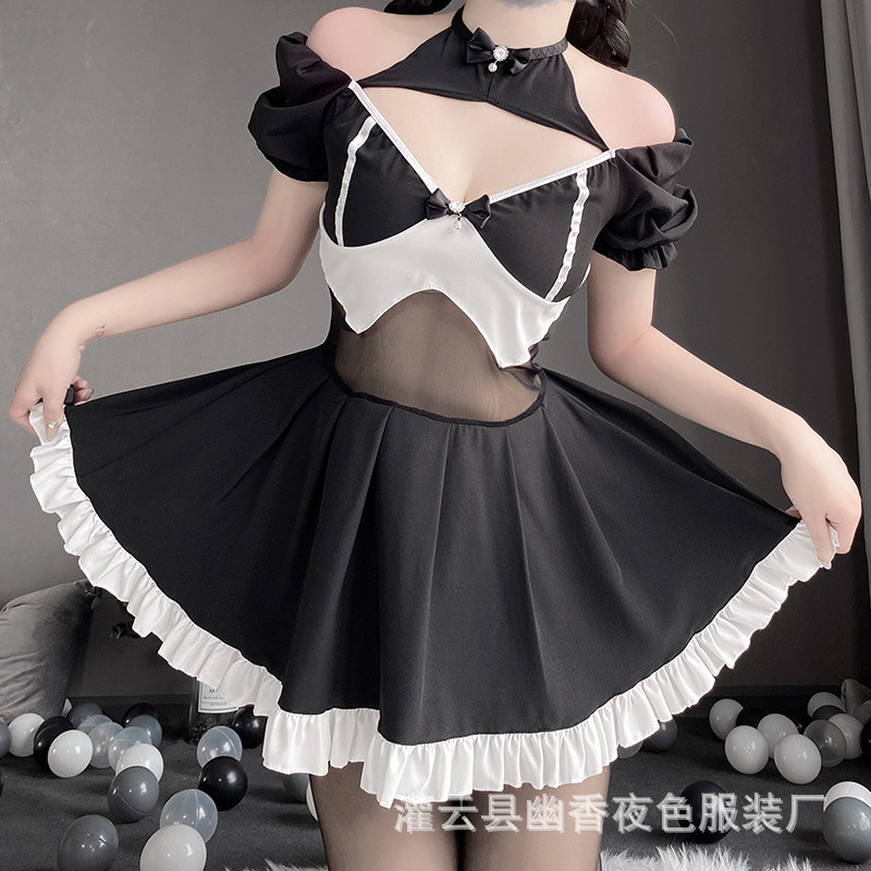 Novo Estilo Vestido de Noite Estilo Mais Sexy Feminino Uniforme Ver-Through Pijama Feminino Novo Estilo Primavera Verão Vestido de Noite de Uma Peça V-Neck Sexy Saia Curta Estilo Fino Mais Noturno