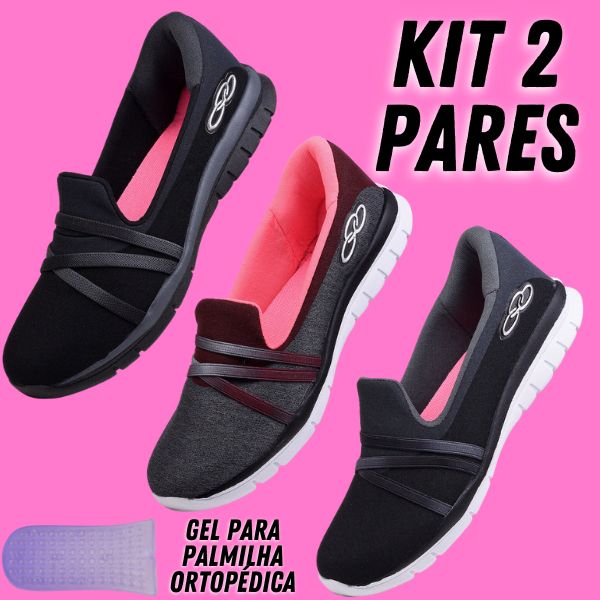 Kit 2 Pares Sapatilha Ortopédica Feminina Olymp Super Confortável Para Caminhada Treino Academia Mega Promo