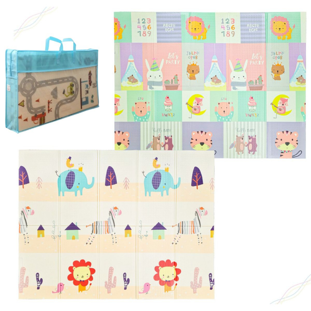 Tapete de Atividades Bebê e Brincadeiras Infantil, Crianças Tatame Dupla Face Emborrachado Grande Dobrável com Sacola para Transporte