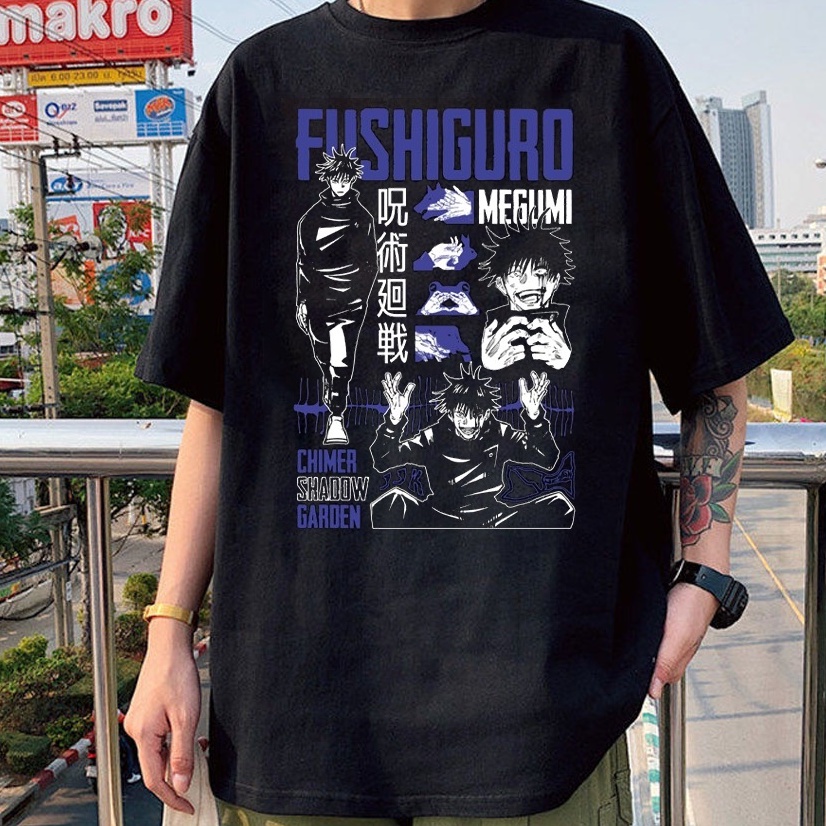 Camiseta Basica Algodao Megumi Fushiguro Garden Jutsu Jujutsu Kaisen Anime Unissex