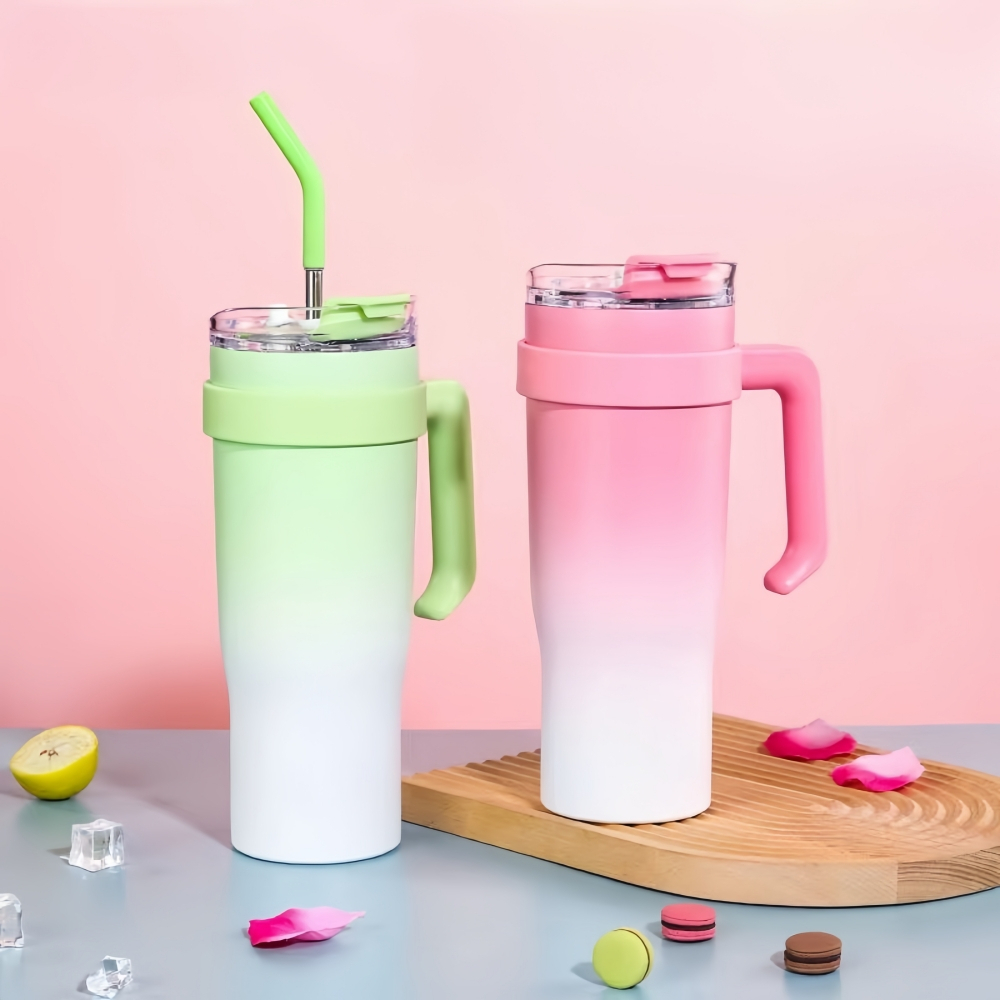 Copo Térmico Inox 600ml/20oz com Tampa Hermética e Canudo Anti Vazamento de Aço Inoxidável