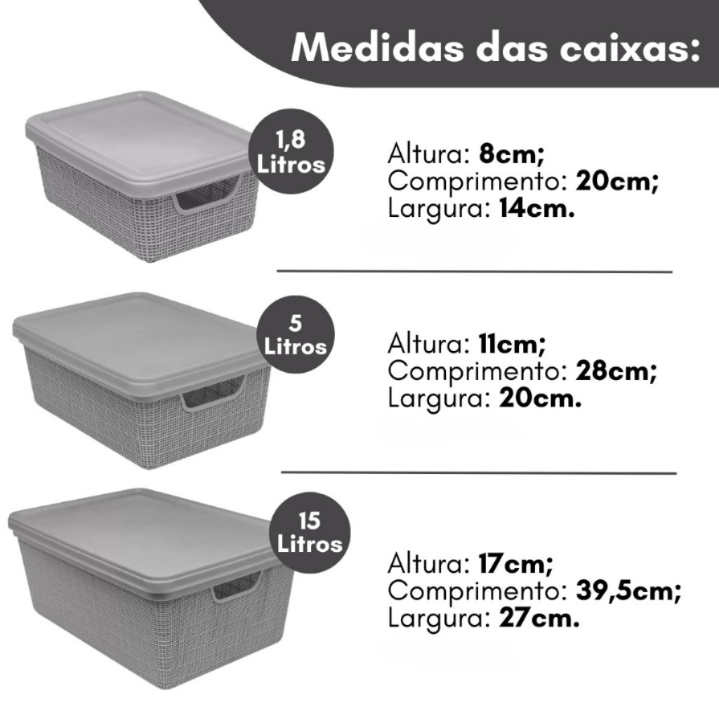 Kit 5 Caixa Organizadora Com Tampa Cesto Grande Em Promoção P M G