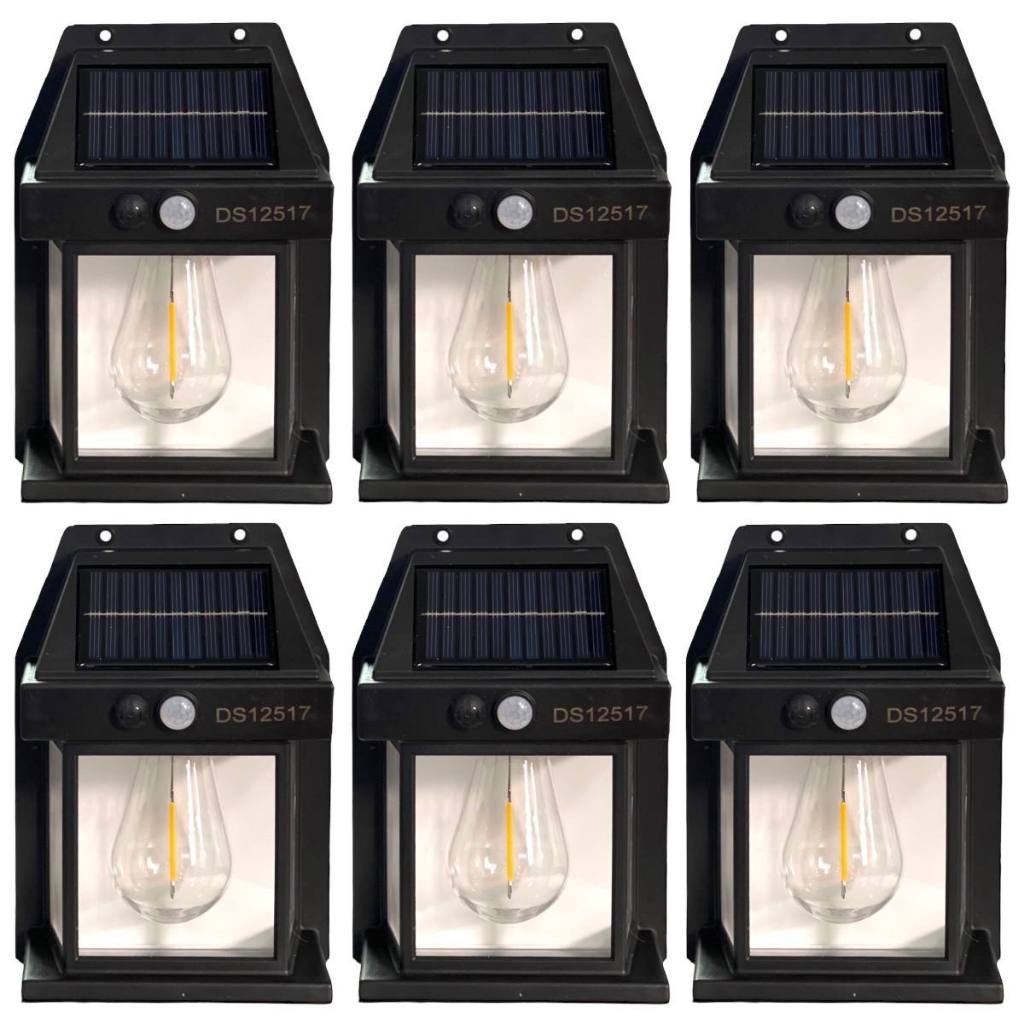 Kit 6 Luminária Arandela Vintage Placa Solar Lâmpada Externa Moderna Decoração Com Sensor De Movimento-LT8609