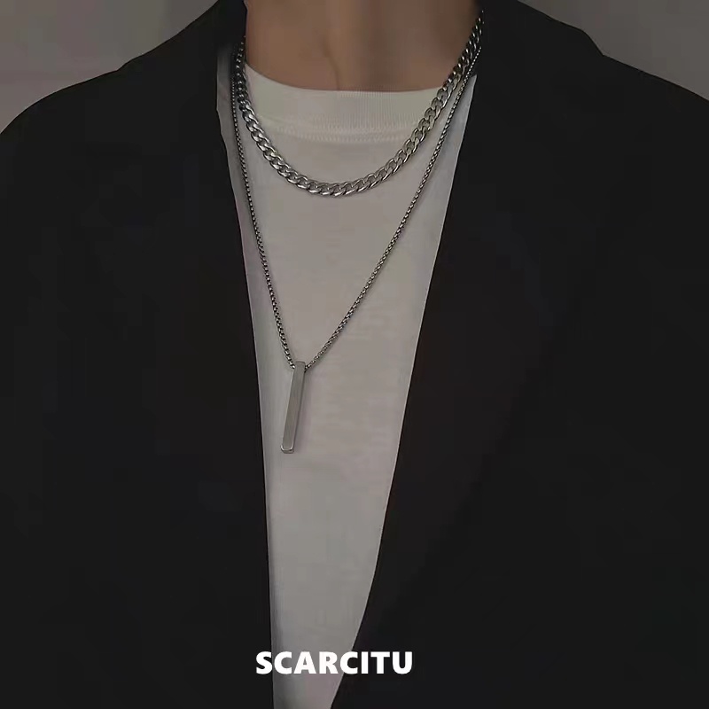 Colar de Pingente Retangular para Homem em Camada Simples - Corrente Cubana e Cordões com Personalidade