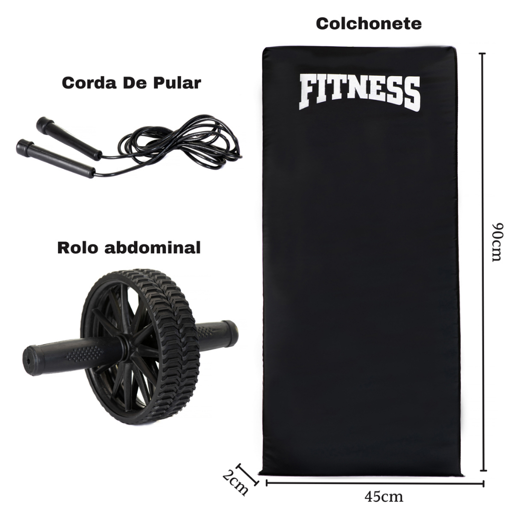 Kit Academia Colchonete Peso e Corda de Pular + Roda Abdominal Combo Fitness