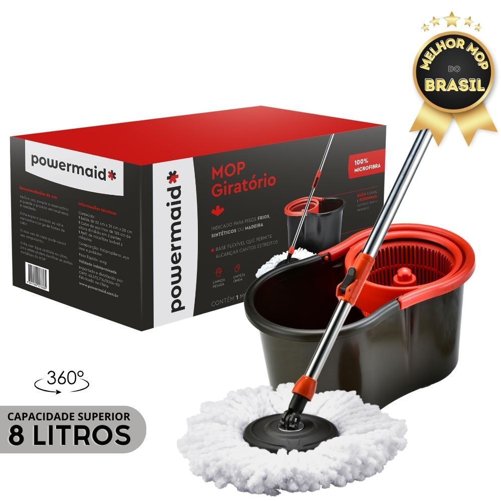 Mop Giratório Esfregão 360° Regulável Balde C/ Rodinha E Alça Rodo Limpeza Geral Multiuso Powermaid