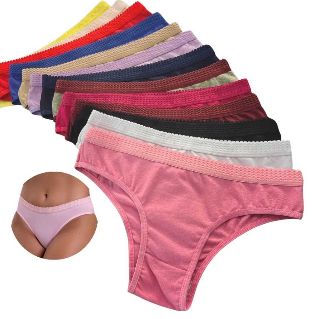 Kit 12 calcinha de algodão cotton tanga conforto cós largo feminina