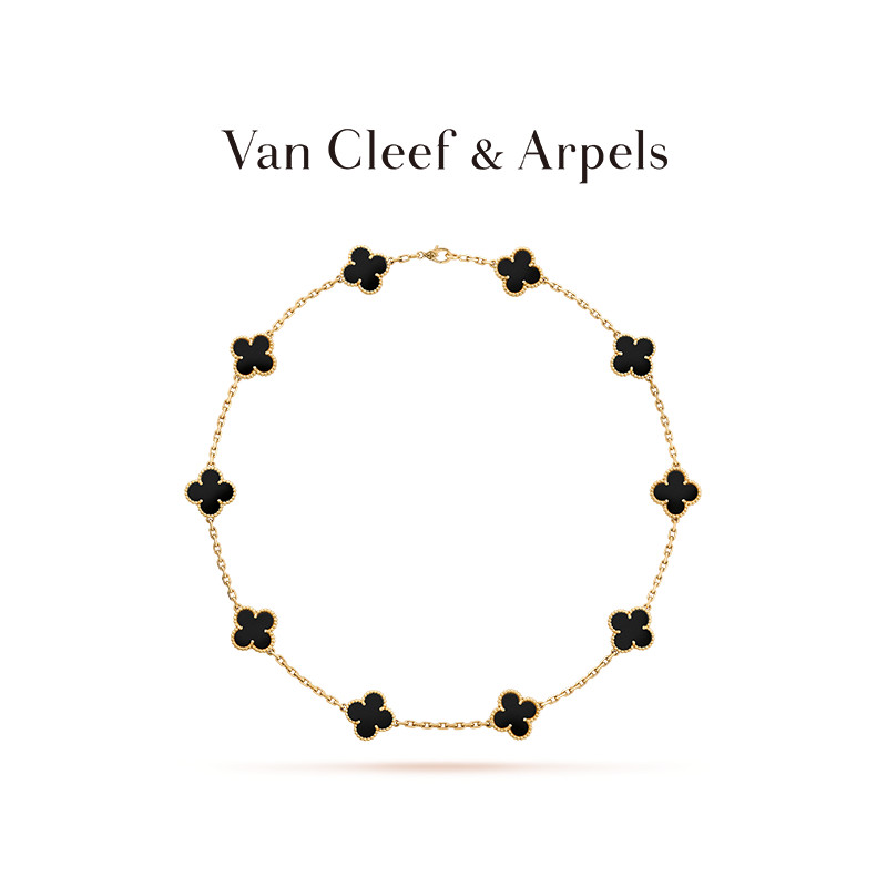 [Estoque Pronto com Caixa de Embalagem] VCA /Van Cleef & Arpels Alhambra Quatro Folhas Lucky Yellow K Golden Agate Ten Flower Necklace [Saco de Presente]