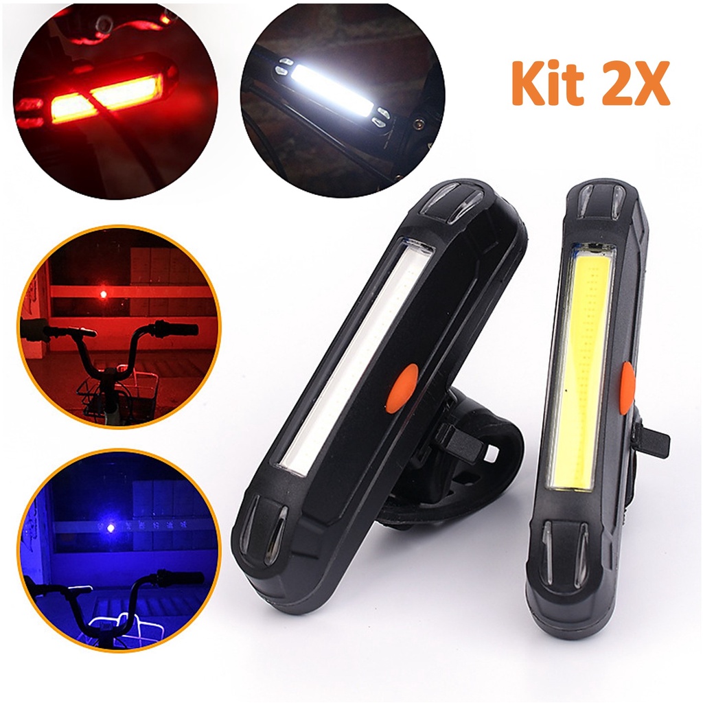 Kit 2 Lanterna Bike Bicicleta Sinalizador Traseira Luz De LED Branca e Vermelha Usb 100 Lumens