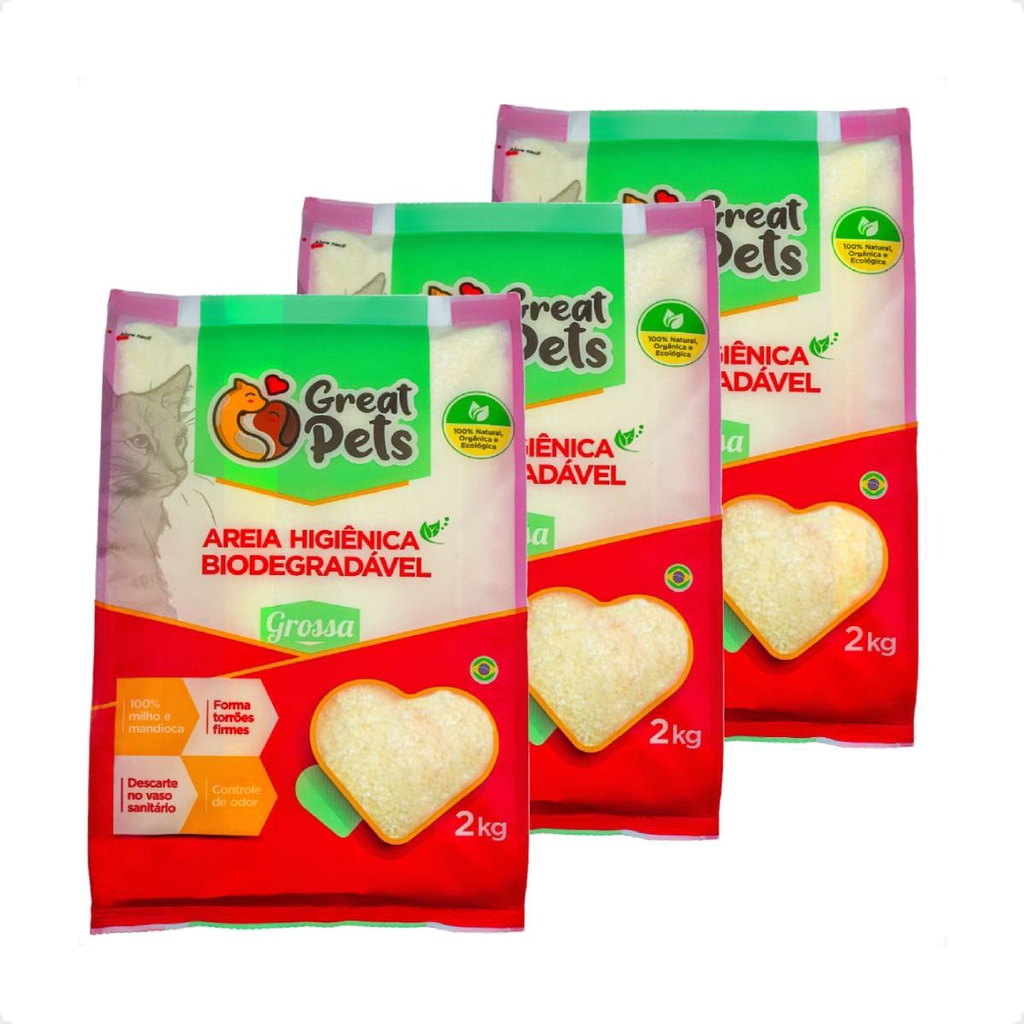 Kit 3 Areia Biodegradável Grossa Great Pets para Gatos - 2 Kg