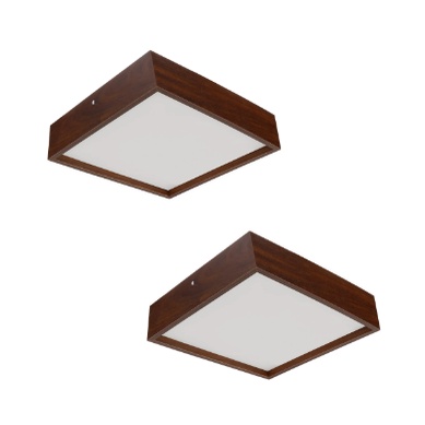 Kit 2 Plafon Wood Quadrado 30x30cm - 2 luzes E27