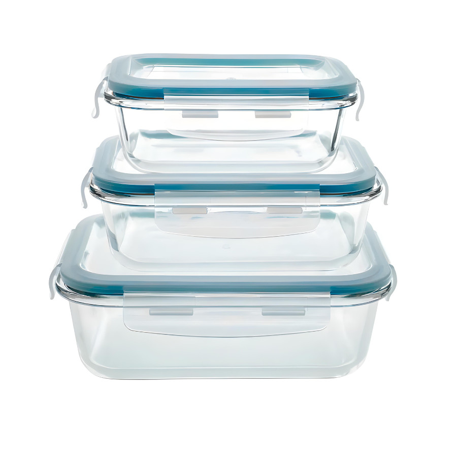 Kit 3 Pote de Vidro Hermético Retangular 370 ml Marmita Microondas Potes Com Trava