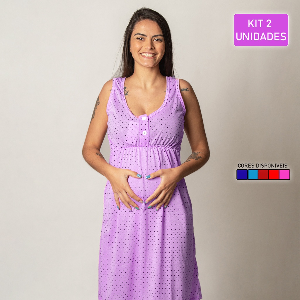 Kit 2 Camisolas Amamentação Gestante Botao AR Confortável Abertura nos Seios