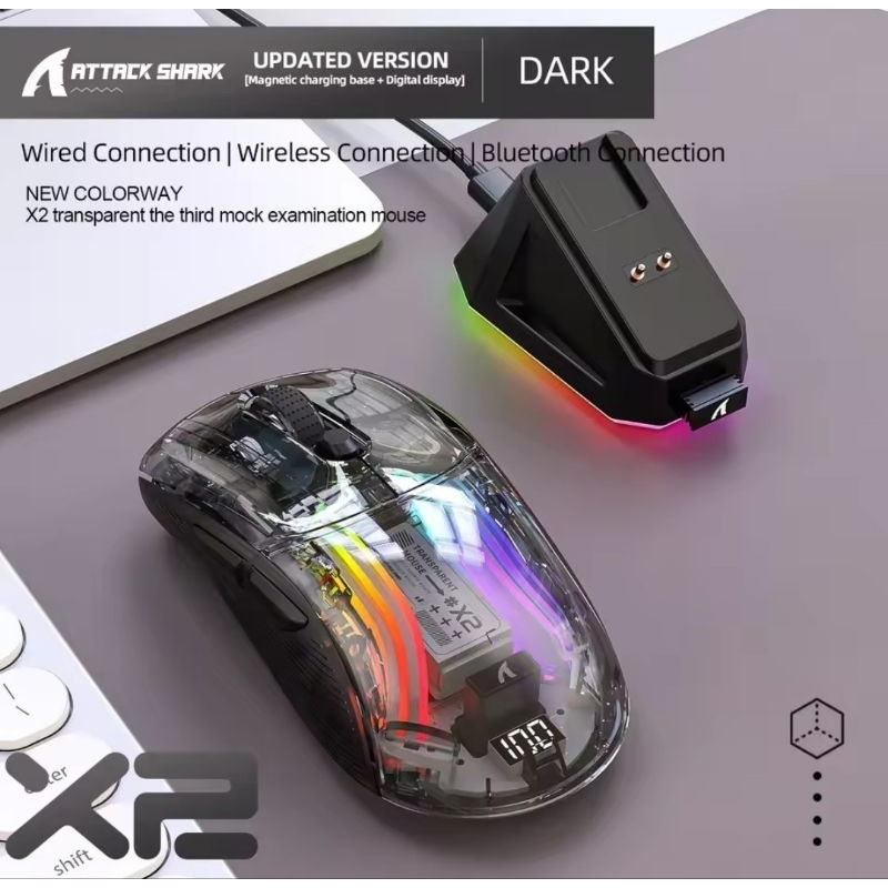Mouse gamer Attack Shark X11 SEM FIO Com Dock Recarregável RGB Bluetooth, 2.4g, PAW3311 PC, Notebook