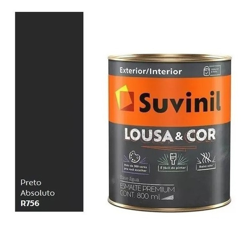 Tinta Preto Absoluto Suvinil Lousa Madeira Metal e Parede Riscar Giz Lavável Interna Externa Antimofo 800ml