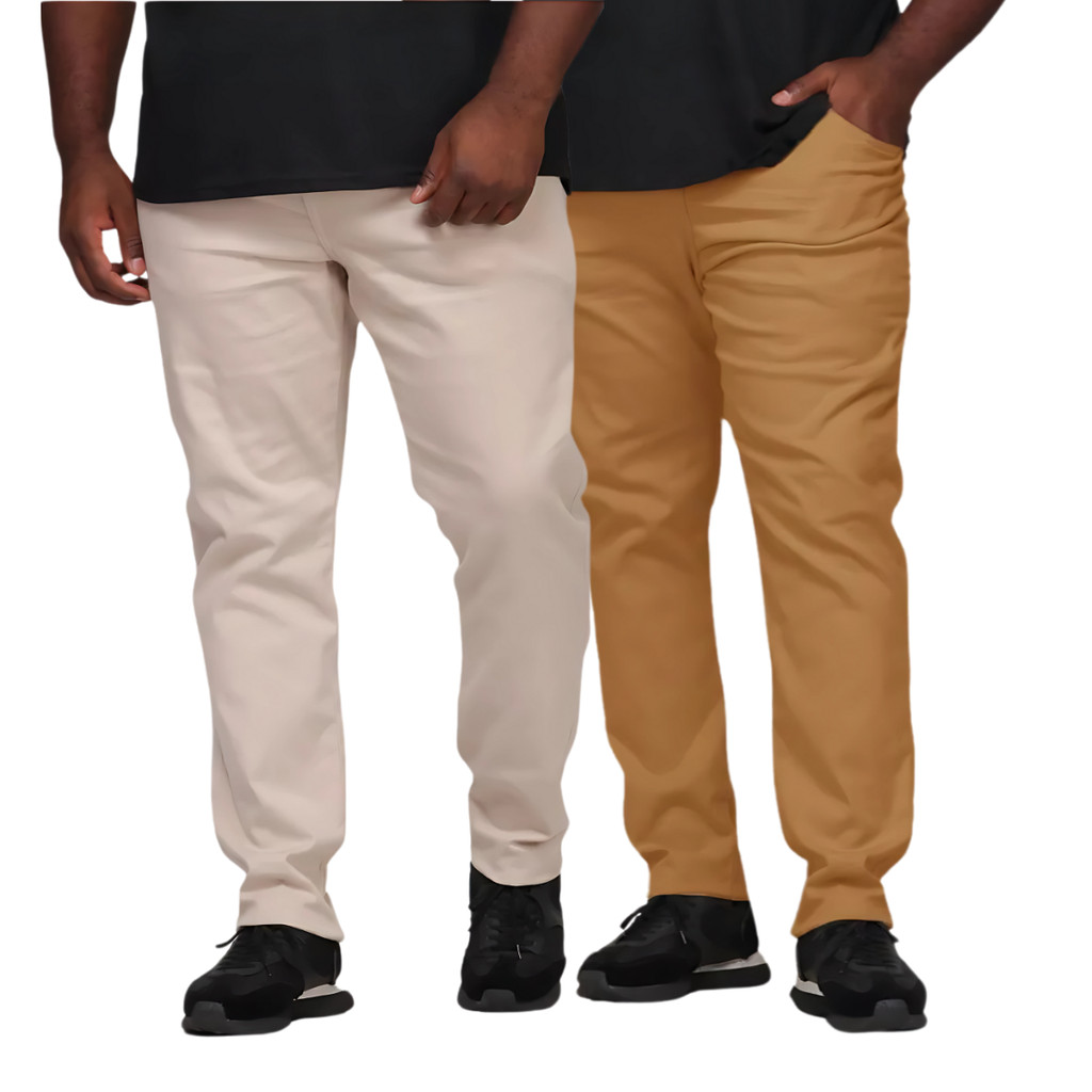 Calça Alfaiataria Masculina Sarja Plus Size Esporte Fino Bolso Faca Chino Social Casual