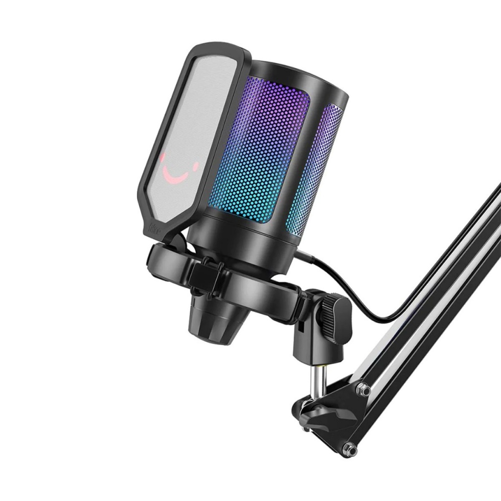 Microfone Fifine Ampligame A6T RGB USB Black BraçoArticulado