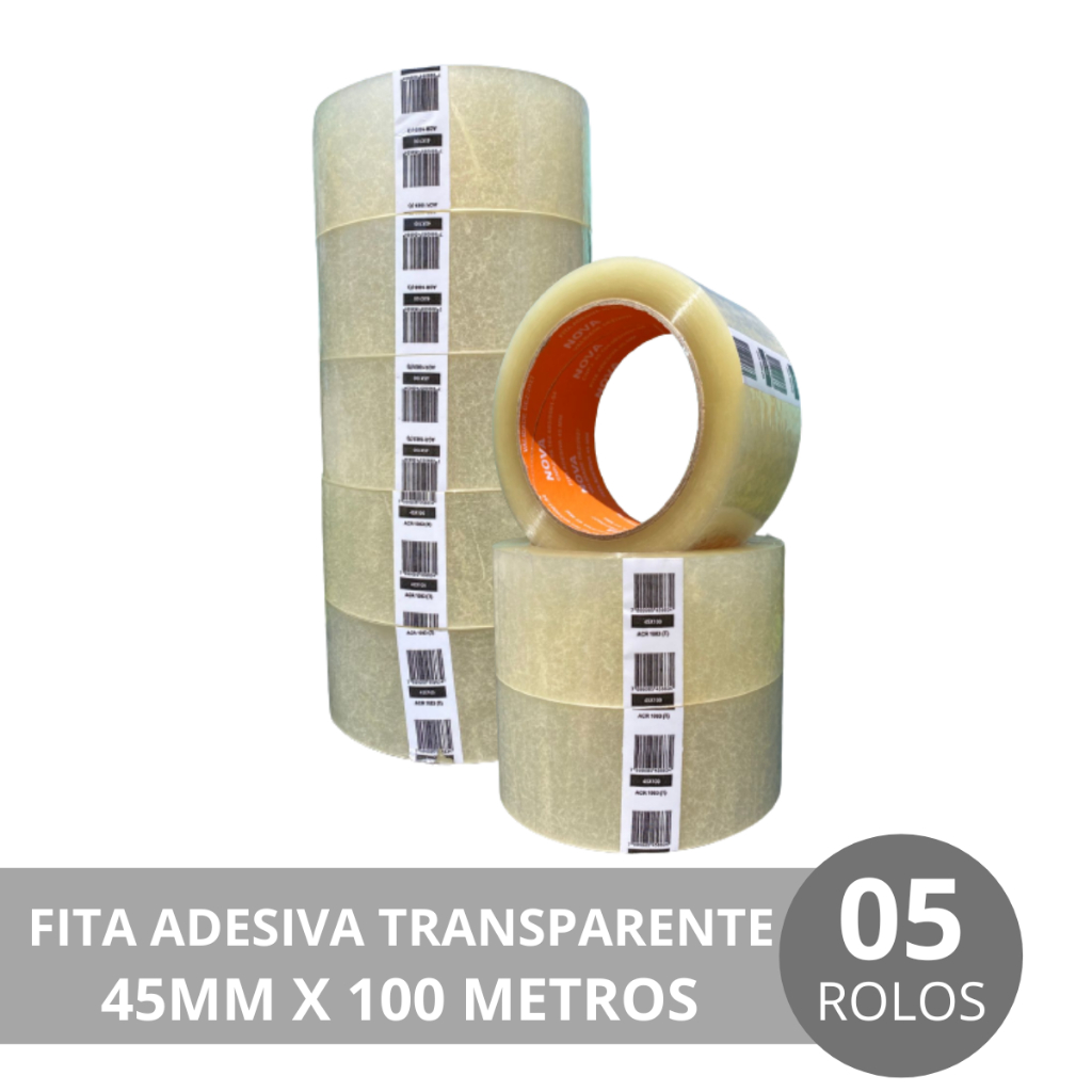 KIT 05 ROLOS DE FITA ADESIVA TRANSPARENTE 45MM X 100 METROS