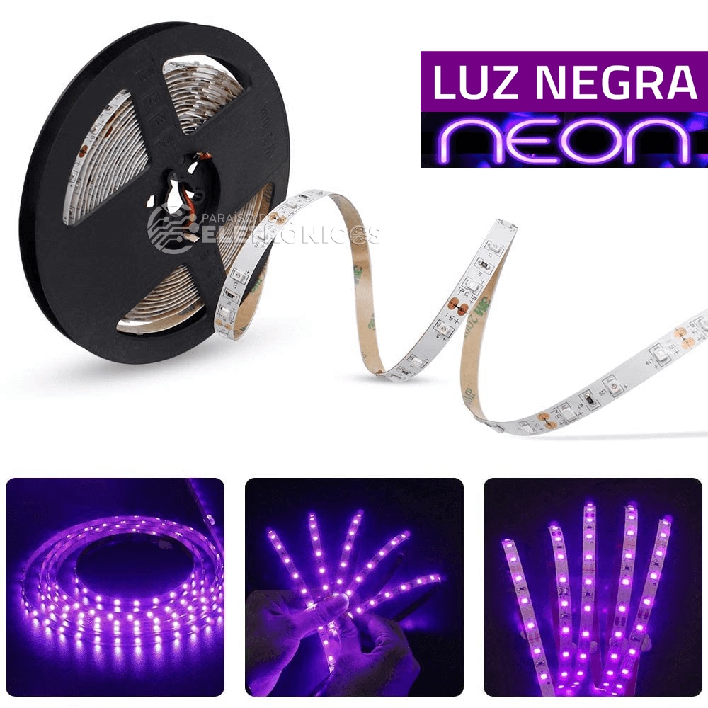 Fita Led Ultravioleta Luz Negra Uv Neon 5mts 120 LEDs Com Fonte de Alimentação - 194888
