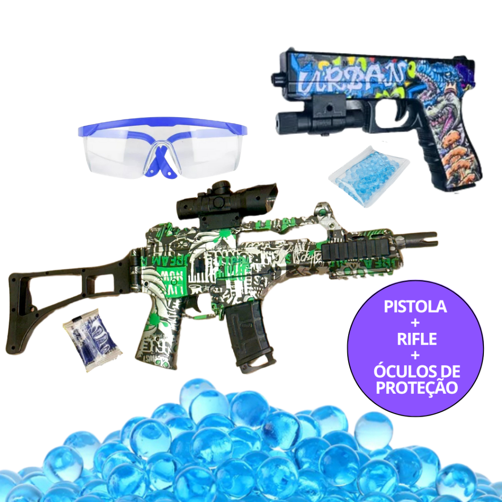 ARMA-PISTOLA ELÉTRICA MIRA LASER BRINQUEDO LANÇADOR DE GEL + KIT ACESSÓRIOS