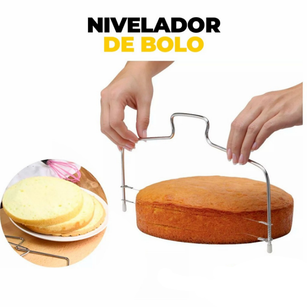 Cortador Fatiador e Nivelador De Bolos Com Fio Duplo Ajustável em Aço Inox