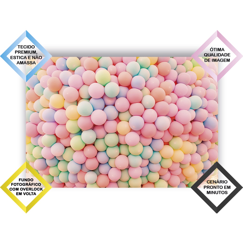 Fundo Fotográfico - Balões Cores Candy Em Tecido 2,20 X 1,50