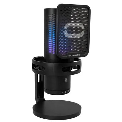Microfone Gamer RGB Adaptador Otg Compatível Com Celular Usb Para PC Streaming Podcast Com Botão Touch Mute