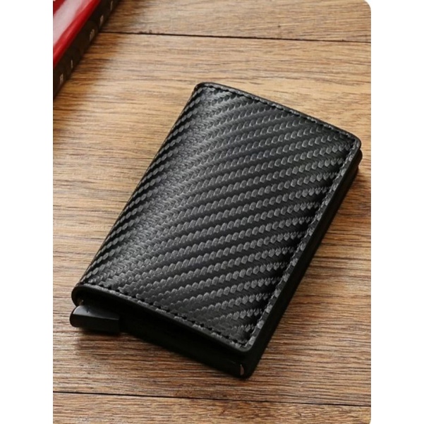 Carteira Ejetora Automática Slim Fibra De Carbono couro Anti Furto Proteção Porta Cartões