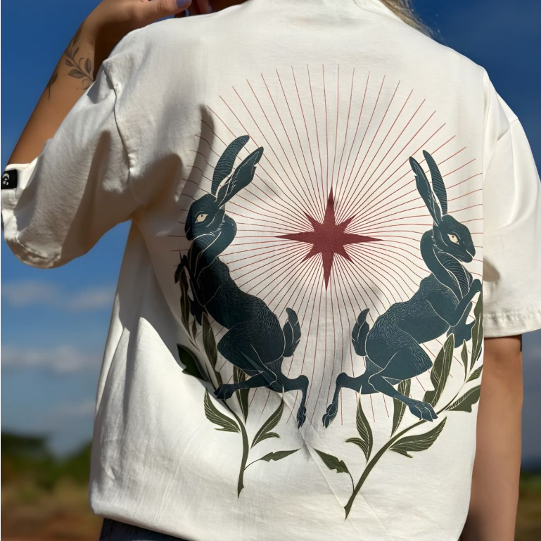 Camiseta Coelho da Sorte - Off-White - Frente e Verso