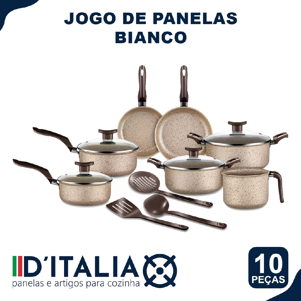 Jogo de Panelas D'Itália 10 Peças Bianco Teflon Antiaderente com Tampa de Vidro